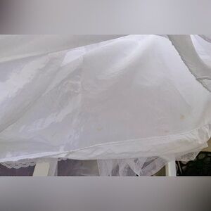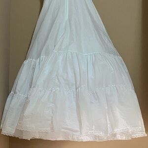 Pure white vintage bridal slip, very full with lots of under layers, still in good condition. Slip has elastic waist that comes to just under breast area. Worn once about 25 years ago by my oldest daughter.
