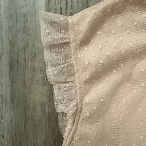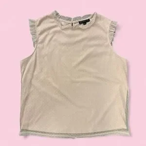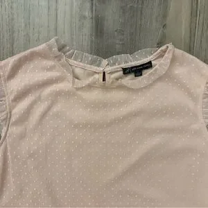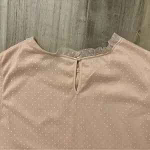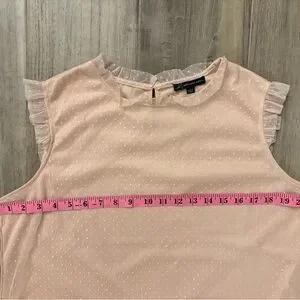 Adrianna Papell Blush Swiss Dot Sleeveless Blouse L – Ruffle Mesh Trim Top