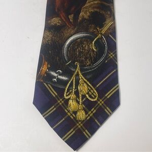 Polo by Ralph Lauren Vintage Deer & Horn Purple/Yellow Plaid Silk Tie Preppy