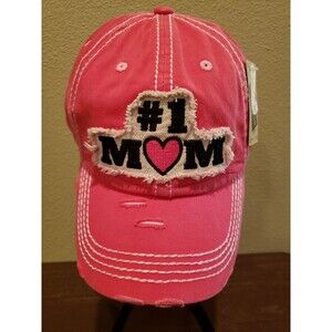 #1 MOM Baseball Cap Distressed Red Coral NWT