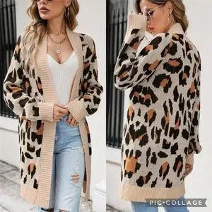 LEOPARD Pattern Drop Shoulder Duster Cardigan