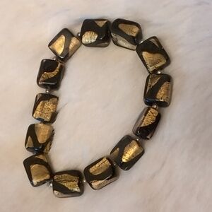 Black and Gold Glass Beaded Stretch Bracelet