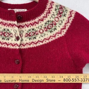 JOHN TULLOCH Sweater Womens XS Shetland 100% Wool Fair Isle Cardigan Red VTG
