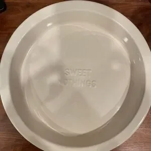 Elegant and minimalist pie dish with a charming 'Sweet Nothings' embossed design. Perfect for baking pies and serving in style. Crafted from durable ceramic, it's ideal for both functional use and display in your kitchen.