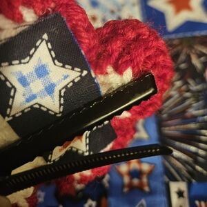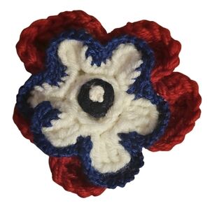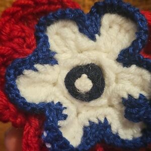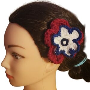 Size 4"x 4" Patriotic hair accessory, handmade by @eclectic_artist colors are red, white, and blue 100% Merino wool in red and blue and white is 100% acrylic yarn