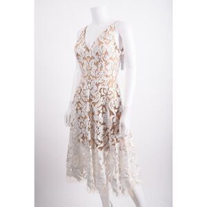 Dress The Population Womens Blair Sleeveless Sequin Lace Midi Dress S White NWT