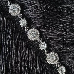 Details: Sparkling Rhinestone accents, cascading Fringe