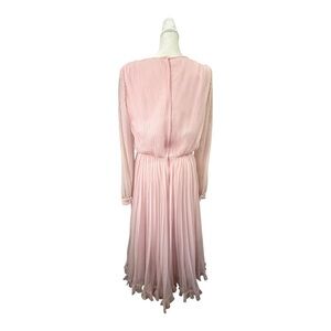 Step back in time with this dreamy vintage Miss Elliette accordion pleated dress in soft blush pink. A true piece of California fashion history from the late 1970s/early 1980s era.