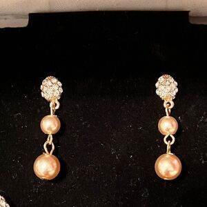 This is a beautiful necklace and earrings set. Faux gold pearls and rhinestones. It comes in its own box. Great for any events or as a present.