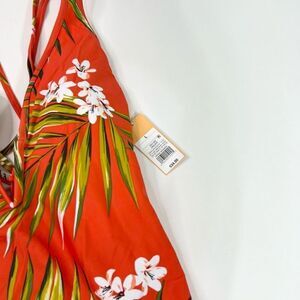 Kona Sol Tropical Pattern One-Piece Swimsuit Womens Orange Large Criss Cross NWT