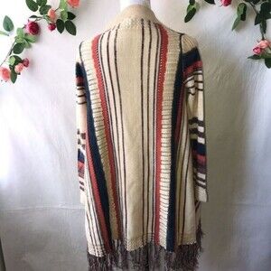 FULL Tilt Fringe Boho Strip Knit Open Front Cardigan Sweater S