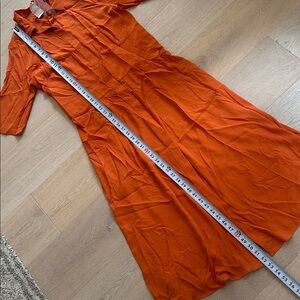 Vibrant orange midi dress. Features a classic collar and short sleeves. Perfect for casual outings.