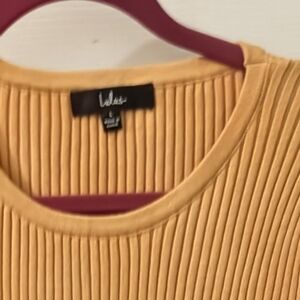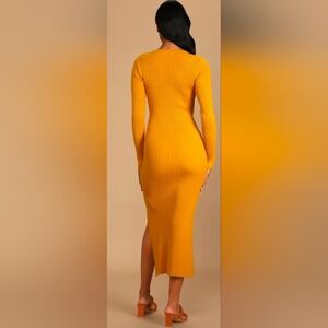 Gently used Women's Lulus Mustard Yellow Ribbed Knit Long Sleeve Midi Dress. Women's size Large.