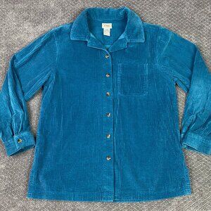 LL Bean Corduroy Shirt Jacket Women's Small Teal Blule cotton Wide Wale 266127