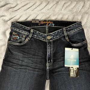 Hincapie Jeans Women 8 R Bootcut Dark Wash Stretch Denim Embroidered Western NWT