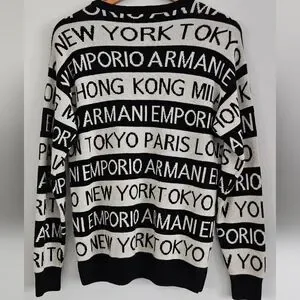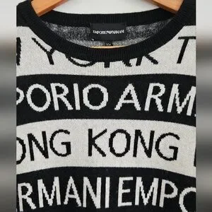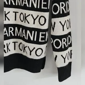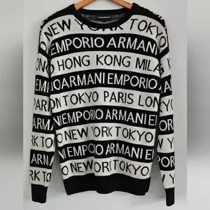 Emporio Armani Black and White All Over Crew-Neck Wool Blend Boy's Sweater Sz 14