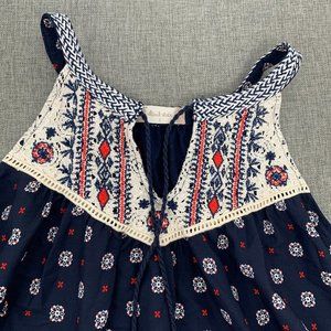 Altar'd State Boho Blouse Asymmetrical Sleeveless Top Paisley Print Tassel Front