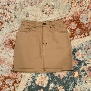 MOTEL NEW Tan BROOMY Stretch Denim Mini Skirt Black Stitching Size XXS.