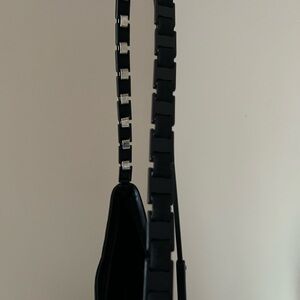 Salvatore Ferragamo Vara Chain Link Shoulder Bag Black Canvas
