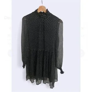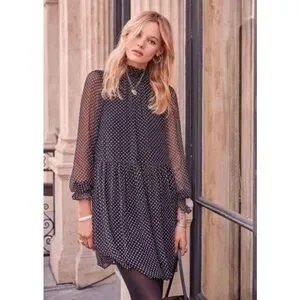 Sezane Olivia dress, silk black and white polka dots size 34 EUC