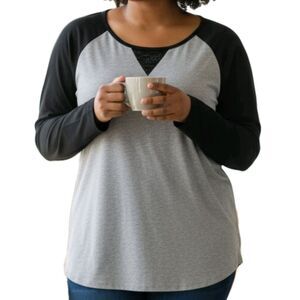 Denim & Co. Active Women's Top 1X Sequin Neckline Accent Contrasting Blue Sleeve