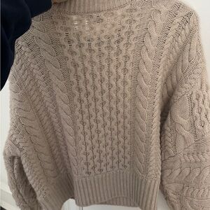 Elegant cable knit design. Soft and warm texture. Perfect for layering.