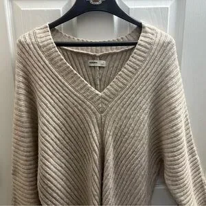 Comfy and cute oversized V-neck sweater. Ribbed texture adds style. Ideal for layering. Smoke free home. Size S, will also fit a M. EUC.