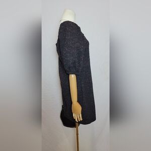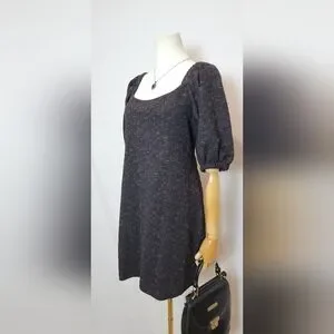 Free People Mini Dress Black Sunset Puff Sleeve Jacquard Knit, Size M