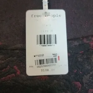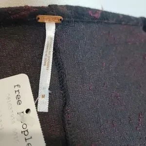Free People Sunset Puff Sleeve Mini Dress. Black and dark red jacquard knit with short puff sleeves and body hugging cut. Original retail price $108.