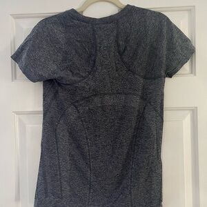 Athleta Momentum Seamless Heather Tee, size M. Form fitting, light weight, little ribbing on inside bottom seam to keep from moving. Worn once! Like new condition. Smoke free home.
