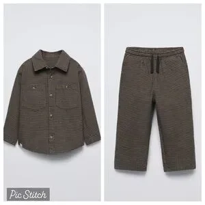 Zara Kids Toddler Boys Flannel Plaid Shirt & Flannel Plaid Pants Set 3T