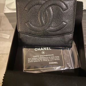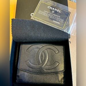 Euc Chanel caviar skin bifold . No rubbing or tearing to any of the edges. Caviar is supple and rich. Hairline scratches throughout, but no scuffs. Interior is clean and all details are present and readable. Please look over all the photos as they are also part of the description and might have visible flaws not mentioned in the verbal references.
