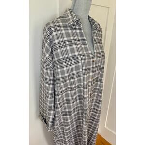 Show Me Your Mumu Leo Button Down Tunic Windowpane Plaid Large Pockets Stretch