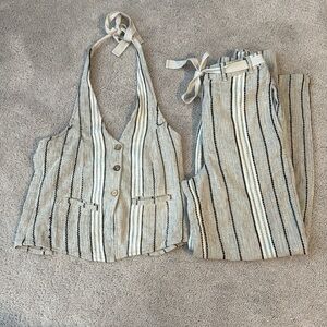 Free People set, striped two-piece, Take Me To Paris, FP set size small, summer outfit, boho style, vacation set, matching set, low-back top, casual chic