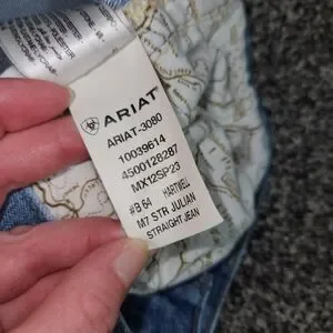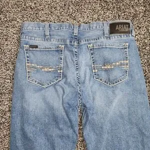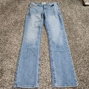 Stylish slim straight jeans. Light blue denim. Classic back pocket design. Comfortable fit. Like new. Ariat Slim fit M7 36x36