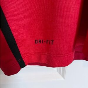 Vibrant red Nike polo. Ideal for active and casual wear. Note the color on this material can be orangey red. It’s the type of material that looks different in different light.