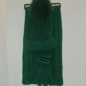 Stay warm and stylish with this green knit winter accessory set. Perfect for adding a pop of color to your winter wardrobe.