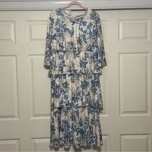 Step out in style with this elegant long sleeve dress, showcasing a beautiful blue floral pattern. Perfect for any occasion, it offers both comfort and sophistication.
