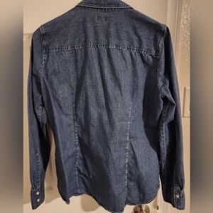 Classic denim shirt with button-up front. Features a chest pocket and long sleeves. Perfect for casual wear.