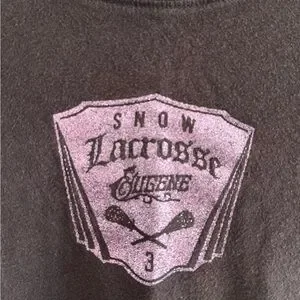 Vintage Old Navy long sleeve T-shirt featuring a pink Snow Lacrosse graphic on the chest. Soft 100% cotton, comfortable "perfect fit" cut, and classic brown color. A great retro Y2K sportswear piece for casual everyday wear.