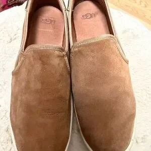 Stylish UGG loafers in soft tan suede. Perfect for casual wear. Great used condition, maybe worn 5 times.