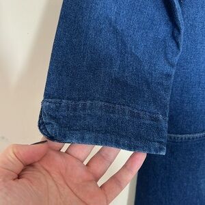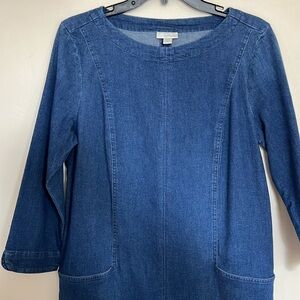 Lightly used J. Jill stylish denim shift dress. It features a classic blue color and three-quarter sleeves, making it perfect for casual outings.