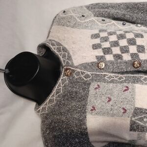 ID distinctions vintage gray silk/angora blend sweater w/embroidered flowers M