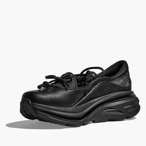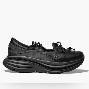 A fluid new expression of the iconic Bondi, the Bondi Mary Jane adapts to the fit and energy of the day with three interchangeable lacing options. A leather and mesh upper with metal hardware details and a HOKA lace toggle imbue the classic silhouette with performance style. Built on a billowed-effect midsole and extra-cushioned heel, this formal sneaker shows off its HOKA DNA.