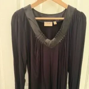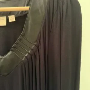 Gorgeous woman's top from Motto. Very good condition. Decorative neckline and rouching on the front. Very soft fabric - 96% Rayon & 4% Spandex. Size large. Machine wash.
