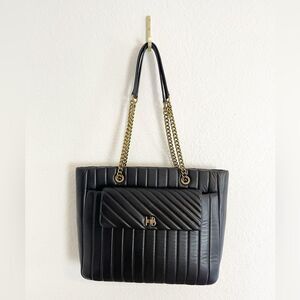 Henri Bendel Black Quilted Laptop Bag with chain handles