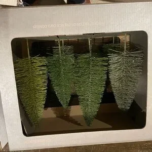 Add a festive charm with Crate&Barrel's green bottle brush trees. Ideal for holiday decor.brand new never used opened the box so you can see the bottoms of tree.