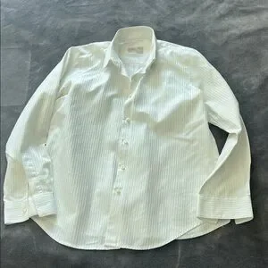 Discover elegance with this white striped button down shirt, perfect for any occasion. Its classic design offers a sophisticated touch to your wardrobe.