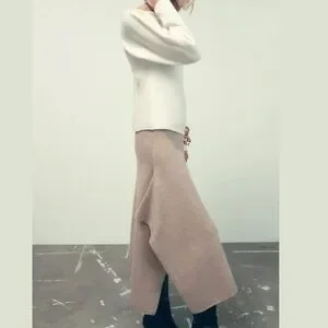 New ZARA WOMEN BEIGE 100% WOOL HIGH WAIST RUFFLED SKIRT