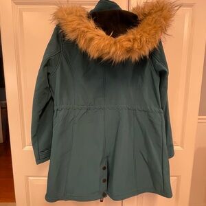 Canada weather gear women’s Teal cinched waist hooded anorak Med Soft Shell Coat